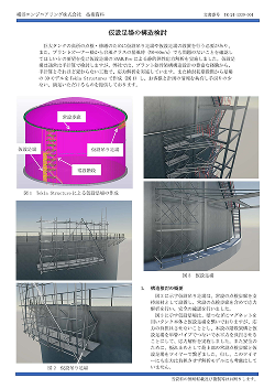 - 設計概要 タンク更新工事過程での既設梁の安全性検討。タンクの引込み・据付持のつり込み時の部材検討。